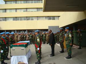 La cérémonie s'est déroulée en présence du Représentant spécial Adjoint Principal, M. Abou Moussa, du Commandant de la Force de l'ONUCI, le Général de Division Fernand Marcel Amoussou, du général Mustafa KAMAL commandant secteur ouest et de nombreux militaires et civils fonctionnaires de l'ONUCI.