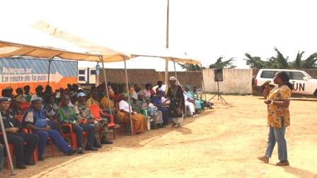 Dans son mot introductif, la Chargée de l'Information publique de l'ONUCI à San Pedro, Kadizatou Ibrahim Cissé, a situé l'objet de la sensibilisation dans le cadre de la promotion du mandat de l'ONUCI qui consiste à accompagner le processus de sortie de crise. « Nous devons faire de la culture de la paix une réalité, en adoptant des comportements non violents et en étant tolérant envers notre prochain, surtout pendant les échéances électorales à venir pour que la Côte d'Ivoire sorte définitivement de la crise », a-t-elle indiqué.