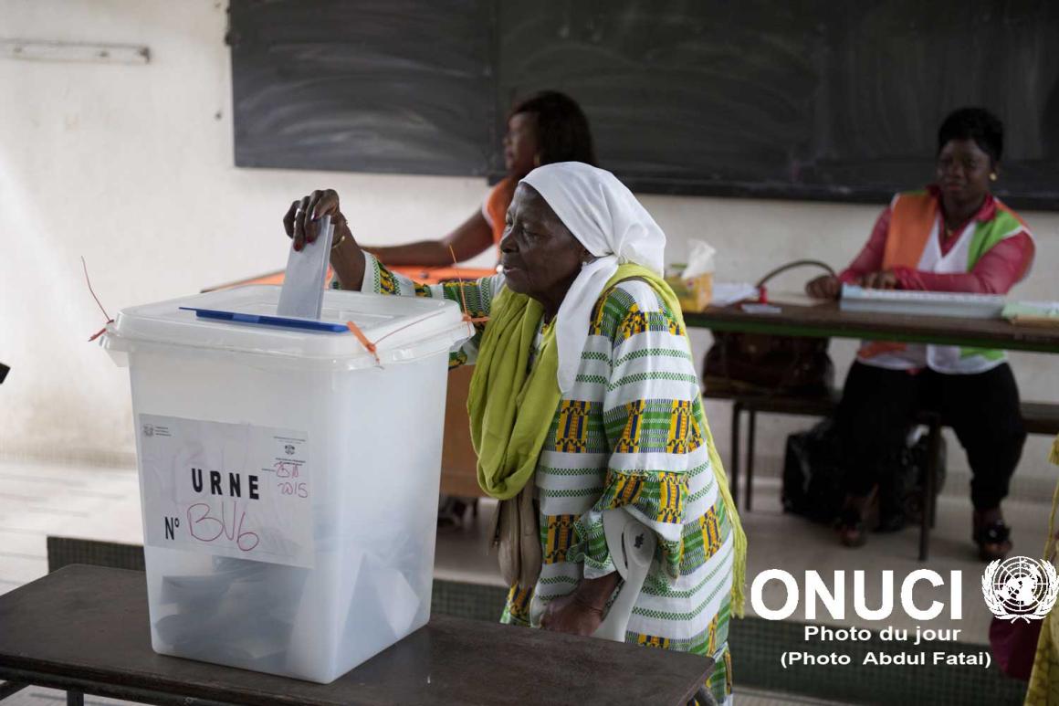 - Une femme vote lors de l'élection présidentielle du dimanche 25 octobre (Abidjan, octobre 2015)
