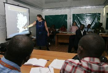 « A l'issue de la formation, les participants devront partager les connaissances acquises, ici, avec les autres collègues », a exhorté Mme Amodeo. Le Bureau de l'Information Publique joue, au sein de la Mission, le rôle clé d'informations et de communication, en promouvant le processus de paix et le rôle de la communauté internationale auprès des communautés locales et des forces en présence. Le Bureau s'appui non seulement sur ses propres medias (radio, bulletins, site Internet...) et ses actions de plaidoyer, mais contribue activement aux efforts de renforcement du professionnalisme, comme moyen de lutte contre l'usage des médias à des fins nuisibles à la recherche de la paix.