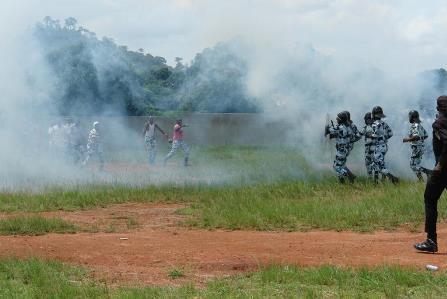 Les autorités administratives et militaires locales, les partenaires internationaux et les populations présentes à la cérémonie de clôture du séminaire ont pu assister à un exercice pratique de techniques de maintien de l'ordre présenté par l'ensemble des participants à cette formation.