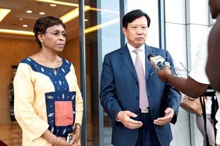 La Représentante spéciale du Secrétaire général des Nations Unies pour la Côte d'Ivoire, Madame Aïchatou Mindaoudou, et l'Ambassadeur de la République populaire de Chine, M. Zhang Guoging ont échangé des points de vue sur l'évolution de la situation politique du pays, le mercredi 16 juillet 2014.