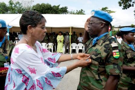 « Je voudrais vous exprimer toute notre satisfaction, en tant que famille onusienne pour la qualité des services que vous avez rendus, mais surtout pour l'attachement que le Togo, votre pays, accorde au retour de la paix en Côte d'Ivoire » a déclaré la Représentante spéciale. Elle a, en outre, relevé le rôle essentiel du TOGOBATT dans le dispositif militaire de la Mission onusienne à Abidjan. « Ce contingent a toujours assuré efficacement, avec professionnalisme et dévouement, les missions qui lui sont assignées », a-t-elle ajouté.