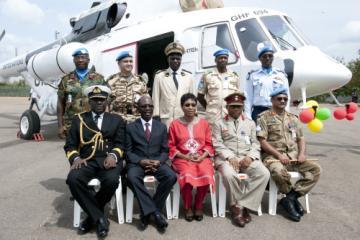 Elle a remercié les autorités civiles et militaires pour leur présence à la cérémonie et pour leur parfaite collaboration avec les Casques bleus et les collègues de l'ONUCI. Elle a également salué le peuple ivoirien pour le soutien qu'il apporte au quotidien aux Nations Unies et à l'ONUCI.