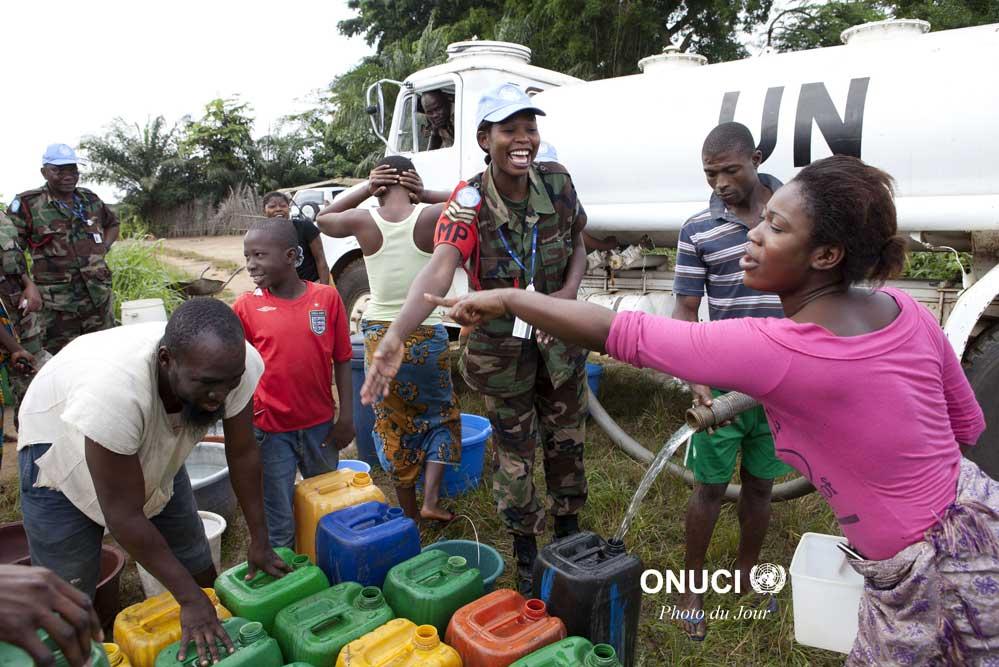 - L’ONUCI distribue de l’eau potable aux habitants d’ Anyama en avril 2012 (Photo ONUCI/Basile Zoma)