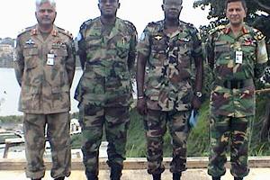 Abidjan, le 15 juillet 2008...Le commandant de la Force de l'ONUCI, le Général Fernand Marcel Amoussou, a remis mardi au siège de l'ONUCI à Abidjan, le certificat de reconnaissance à la contribution de la paix aux généraux…