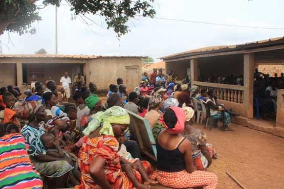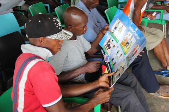 ONUCI Tour in Claironkro: local communities’ leaders listening carefully to a member of the visiting delegation of the UN Mission who encourages them to strengthen social cohesion (Claironkro near Divo, May 2016)