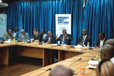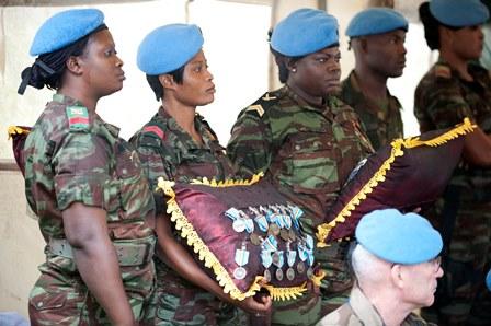 Le Représentant spécial adjoint du Secrétaire général des Nations Unies pour la Côte d'Ivoire, Arnauld Akodjènou, en présence d'une délégation militaire béninoise, ayant à sa tête, l'Amiral Denis Hounsou Gbessemehlau, Chef d…