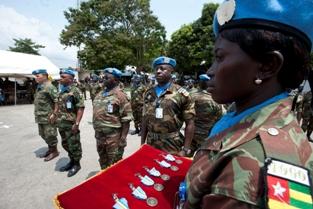 La Représentante spéciale du Secrétaire Général des Nations Unies pour la Côte d'Ivoire, Mme Aïchatou Mindaoudou, a décerné, le jeudi 13 mars 2014, à Abidjan, aux Casques bleus du 19e contingent togolais (TOGOBATT) de l…