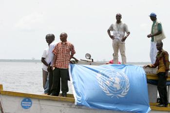 Adiaké, le 18 février 2009...L'Opération des Nations Unies en Côte d'Ivoire (ONUCI), a affrété, mercredi, une pinasse pour transporter quatre équipes d'identification dans des villages de la Sous-préfecture d'Ettoueboué, près…