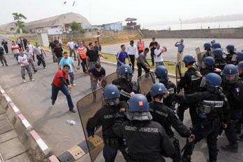 Abidjan, le 27 Janvier 2009... La police de l'Opération des Nations Unies en Côte d'Ivoire (ONUCI) effectue périodiquement diverses activités dont des exercices de contrôle de foule. Une simulation effectuée le 24 janvier a…