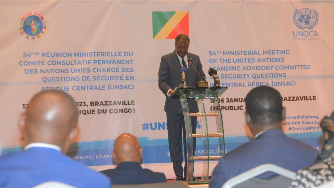 La 54e session ministérielle du Comité consultatif permanent des Nations Unies chargé des questions de sécurité en Afrique centrale (UNSAC) a pris fin le 16 janvier à Brazzaville, quatre jours après la réunion des Points focaux et des experts. La cérémonie officielle d’ouverture a été présidée par le Premier ministre congolais, M. Anatole Collinet Makosso. Elle a eu lieu en présence des membres du gouvernement, du corps diplomatique, des représentants des organisations régionales et sous-régionales ainsi que des hauts fonctionnaires des Nations Unies, dont le Représentant spécial adjoint à la Mission des Nations Unies pour la stabilisation en République démocratique du Congo (MONUSCO), M. Bruno Lemarquis, l’Envoyé spécial du Secrétaire général pour les Grands lacs, M. Huang Xia, le Représentant spécial du Secrétaire général des Nations Unies auprès de l’Union africaine, M. Parfait Onanga-Anyanga et son collègue pour l’Afrique centrale et Chef de l’UNOCA, M. Abdou Abarry. Dans son allocution, ce dernier a exprimé sa gratitude au gouvernement « pour son hospitalité remarquable ainsi que pour les efforts et les ressources investis pour […] offrir un cadre optimal de concertation et de réflexion sur les questions de sécurité en Afrique centrale ».