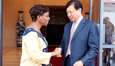 La Représentante spéciale du Secrétaire général des Nations Unies pour la Côte d'Ivoire, Madame Aïchatou Mindaoudou, et l'Ambassadeur de la République populaire de Chine, M. Zhang Guoging ont échangé des points de vue sur l'évolution de la situation politique du pays, le mercredi 16 juillet 2014.
