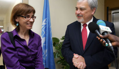 Speaking at the end of the meeting, which was held in headquarters of the United Nations Operation in Côte d'Ivoire (UNOCI) in Abidjan, Mrs Smith said she had come to discuss the current situation in the country with the head of UNOCI, on behalf of Senator Kerry. "The Committee is very interested in the evolution of the situation in the country and the reconciliation process".